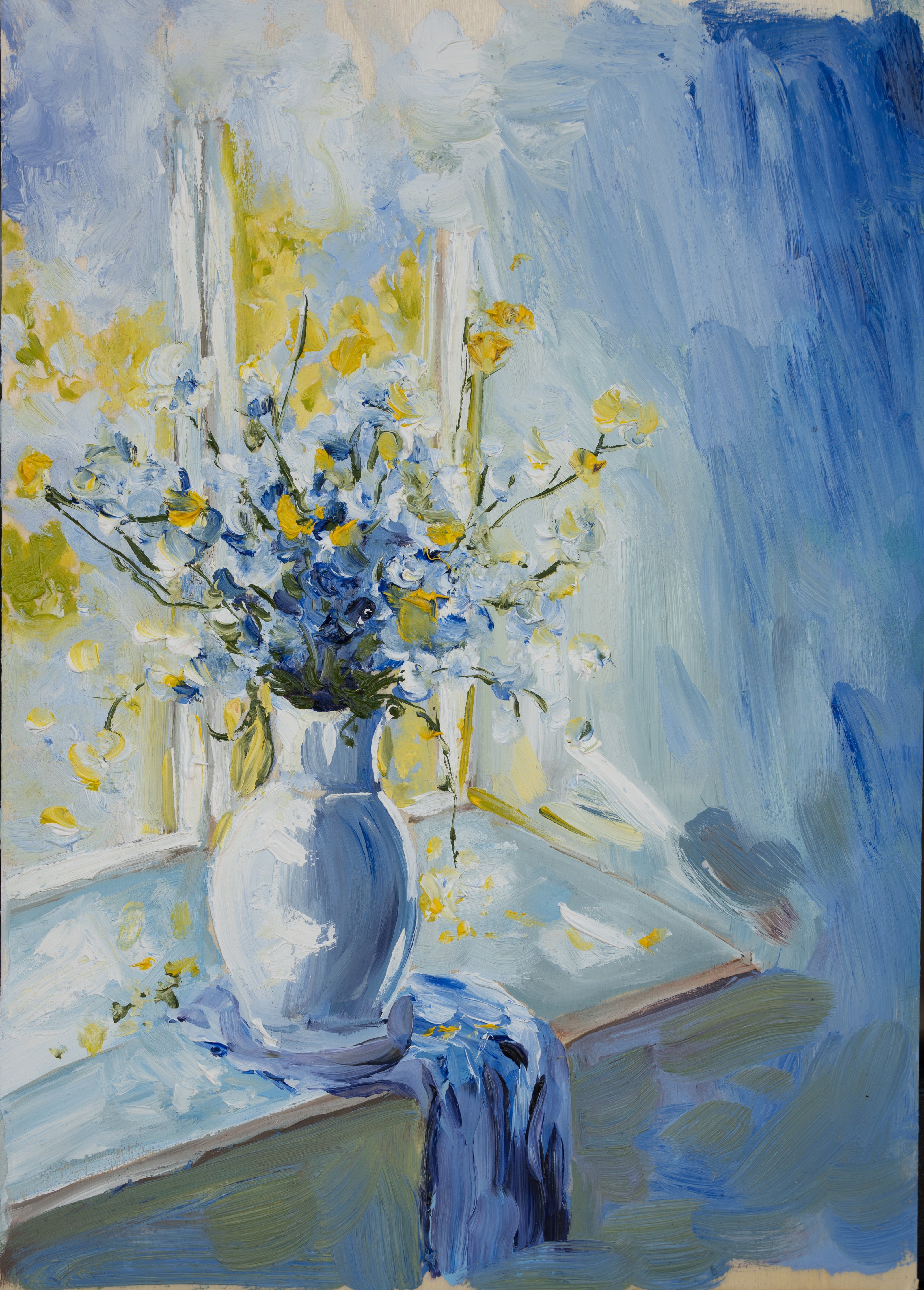 Painting, for me, is a way to reconnect with that deeper truth. While nature is often at the heart of my work—its completeness, its quiet perfection, its changing moods throughout the seasons—I am equally drawn to capturing the subtle poetry of everyday life: the glow of a room at dusk, the weight of memory, the quiet strength of human connection. Each piece is an attempt to hold onto fleeting moments of light, atmosphere, and emotion.